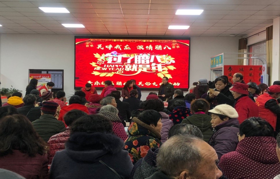 “村村闻社鼓,又了一年中。”恰逢农历腊八节,康乐社区活动室里洋溢着浓浓的节日气氛。剃年头、磨年刀、写春联,百代余位老人欢聚一堂,共享香甜腊八粥。“今朝佛粥交相馈,更觉江村节物新。”